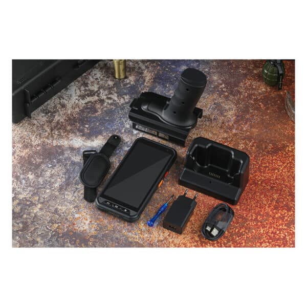 - Pistol Grip, Charging Cradle, wrist strap